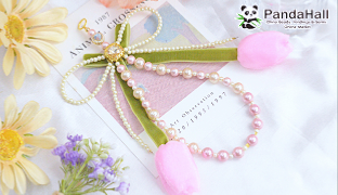 Смотреть видеоБрелок и подвеска для сумки в виде тюльпана с жемчужными бусинами.
