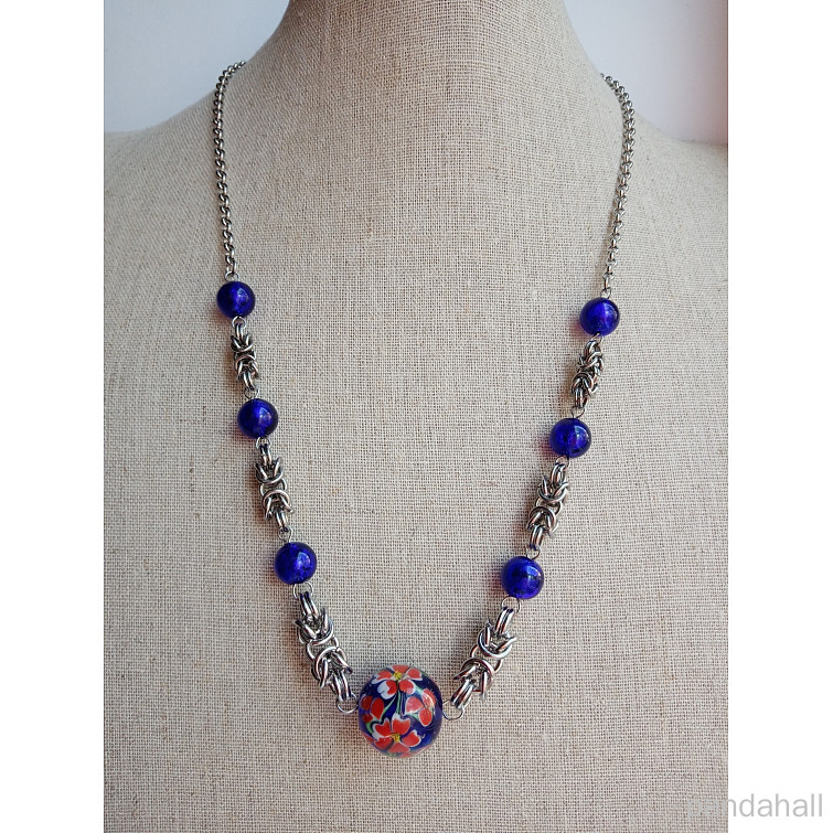 • Стеклянные бусины, с фольгой внутри, ручная работа, круглые, синие, 9.5~10.5 мм, отверстие : 1~2 мм