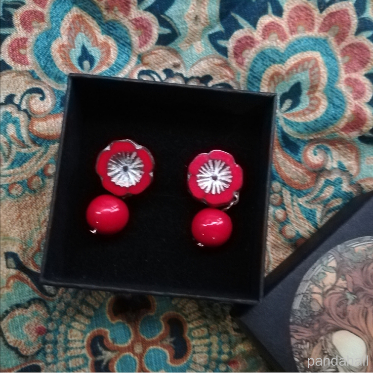 • Чешские Бусины, цветок гибискуса, красные, 14x5 мм, отверстие : 1 мм