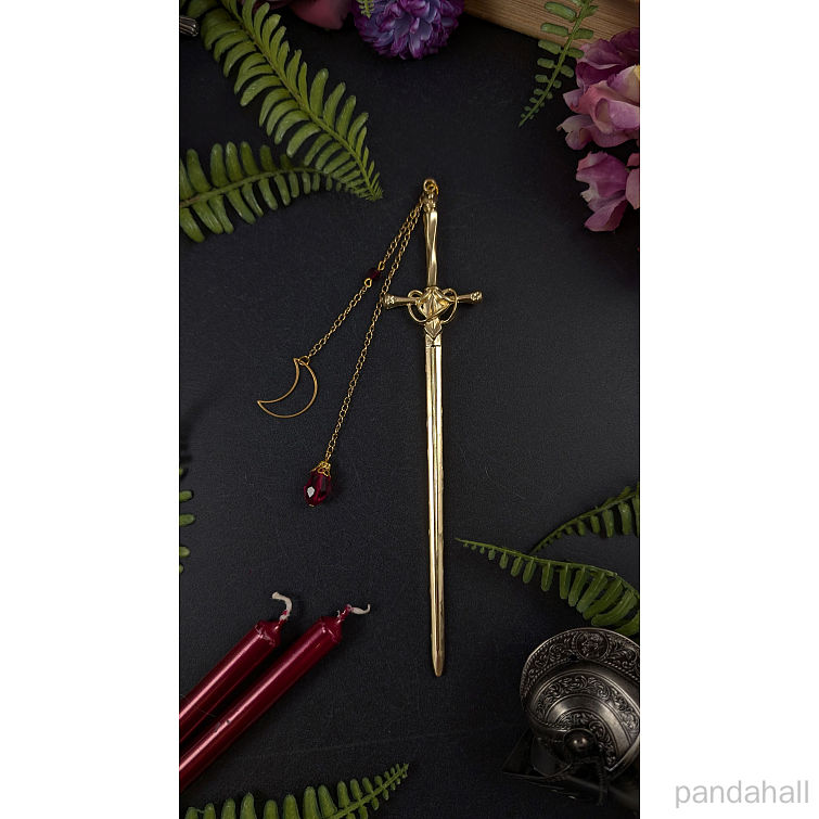 • Сплав потока Су меч шпилька древний костюм головной убор шпилька гальванический кулон меч, золотые, 202x42~43x7 мм, отверстие : 2.5 мм