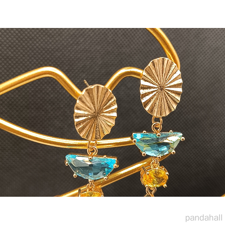 • Прозрачные стеклянные соединители звеньев, с латунной фурнитурой , граненые, полукруглый, золотой свет, разноцветные, 14x16x5 мм, отверстие : 1.2 мм