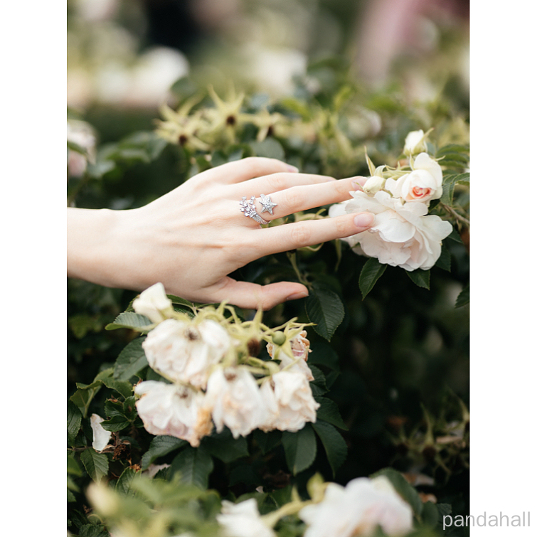 • Открытые манжеты из латуни с микропаве и прозрачным цирконием для женщин, звезда, платина, 22 мм, внутренний диаметр: 16 мм