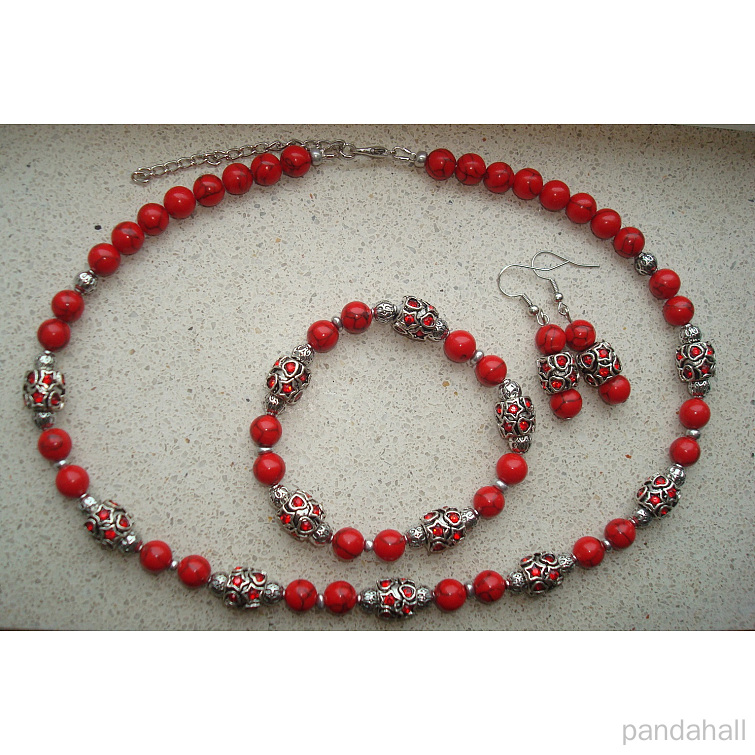• Синтетическое бирюзовый драгоценный камень круглый шарик нити, окрашенные, красные, 8 мм, отверстие : 1.5 мм, около 47~48 шт / нитка, 14.5 дюйм