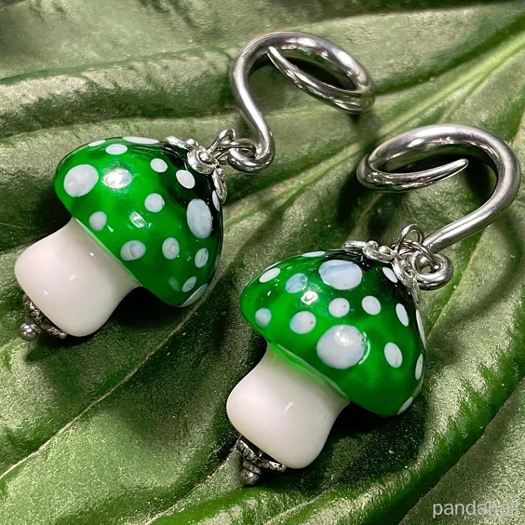 • Бусы лэмпворк ручной работы, гриб, темно-зеленый, 22~23x19.5~20.5x19.5 мм, отверстие : 0.6~1 мм, около 20 шт / нитка, 17.32'' (44 см)