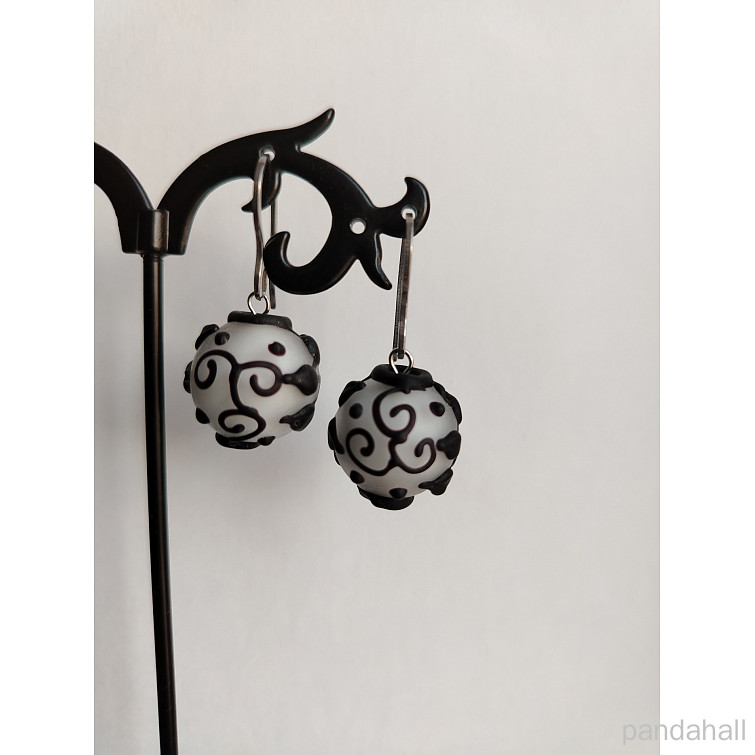 • Бусины лэмпворк , круглая с цветком, светло-серые, 436 мм, около 25 шт / нитка