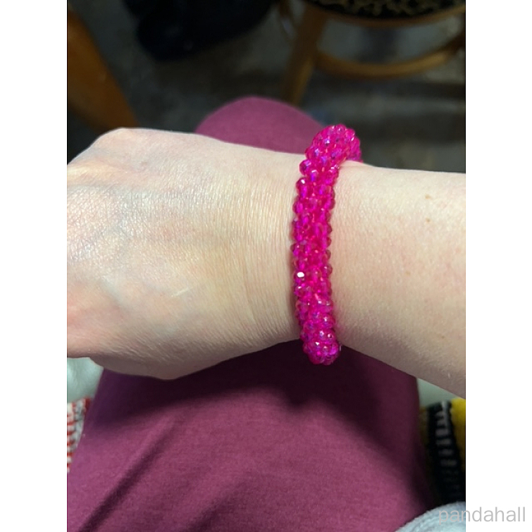 • Граненые прозрачные стеклянные бусины эластичные браслеты, торсадные браслеты, рондель, темно-розовыми, внутренний диаметр: 2 дюйм (5 см)