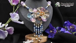 Смотреть видеоОжерелье из бисера с кисточками в виде сине-фиолетового цветка
