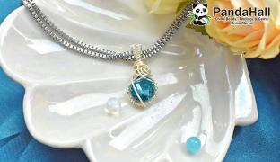 Смотреть видеоОжерелье с подвеской из стекла цвета морской волны в форме прямоугольника