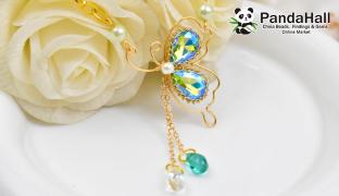 Подвеска-бабочка из проволоки с покрытием из стеклянных стразов