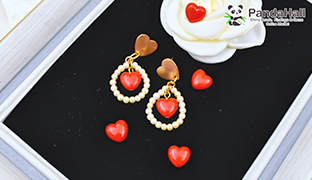 Смотреть видеоСерьги из акриловых бусин в форме красного сердца