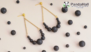 Смотреть видеоСерьги из бусин из лавового камня