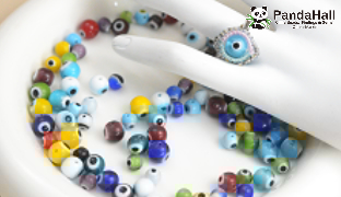 Смотреть видеоКольцо из бусин, имитирующих сглаз, изготовленное методом выдувания стекла.