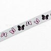 Одного лица бабочка напечатаны полиэстер Grosgrain ленты, светло-серый, 3/8 дюйм (9 мм), о 100yards / рулон (91.44 м / рулон)(OCOR-S033-9mm-03)