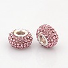 Cmолы Rhinestone Европейский бисером,класс А,бусины с большими отверстиями в форме шайбы,с серебряного цвета латуни двойные сердечники,светло-розовый