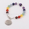 Multi-Color Gemstone Chakra Charm Bracelets, with Tibetan Style Tree of Life Pendant, Glass Beads, Tibetan Style Spacers and Brass Lobster Claw Clasps, Antique Silver, Amethyst, 195mm Multi-Color Gemstone Chakra Charm Bracelets, with Tibetan Style Tree of Life Pendant, Glass Beads, Tibetan Style Spacers and Brass Lobster Claw Clasps, Antique Silver, Mixed Stone, 195mm