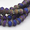 Полная радужная граненая нить стеклянных бусин рондель,матовые,индиговые