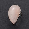 Регулируемые кольца из натурального розового кварца и платины из латуни,слеза