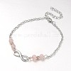 Мода тибетский стиль сплава бесконечность браслеты,с розовым кварцем бисера,цинкового сплава омаров коготь застежки и металлические цепи,античное серебро