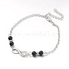 Мода тибетский стиль сплава бесконечность браслеты,с черными каменных бус,цинкового сплава омаров коготь застежки и металлические цепи,античное серебро