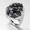Регулируемые широкие кольца из латуни с драгоценными камнями в виде слезинки платинового тона,снежинка обсидиан