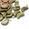 Луна природные Unakite подвески, с латунной фурнитурой платинового цвета, 21~24x12~14x5~6 мм, отверстие : 2x7 мм(G-Q369-06)