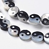 Фэн-шуй белые бусы из ракушек,с натуральным черным агатом,плоско-круглые,Инь-Ян,чёрные