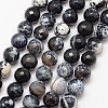 Бусы из натурального огненного агата с потрескиванием,круглые,граненые,окрашенная и подогревом,чёрные