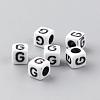 Непрозрачные акриловые бусины, стиль письма, кубические, letter.g, 6x6x6 мм, отверстие : 3 мм, Около 3000 шт / 500 г(SACR-Q188-02G)
