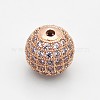 Латунные микро проложить класса AAA кубического циркония бусы,без кадмия, без никеля и без свинца,круглые,чертополох,розовое золото
