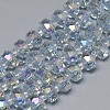 Стеклянные бусины с гальваническим покрытием ,с покрытием цвета радуги,граненые,плоско-круглые,светло-стальной синий