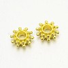 Бусины разделители из сплава , цветок, золотые, без свинца, без кадмии и без никеля, 9x3 мм, отверстие : 2.5 мм(X-TIBEB-LFH10384Y-G-FF)