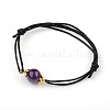 Драгоценный камень регулируемая ссылка браслеты,с крышками из сплава и вощеным хлопковым шнуром,античное золото ,аметист