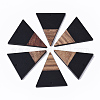 Resin & Walnut Wood Pendants, Triangle, Black, 37x31x3.5mm, Hole: 1.8mm