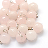 Круглый натуральный розовый кварц подвески,с латунной фурнитурой платинового цвета