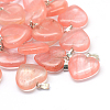 Сердца стеклянные подвески вишня кварц,с латунной фурнитурой платинового цвета,