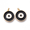 Латунь эмаль подвески,без никеля ,плоские круглые с сглаза,реальный 18k позолоченный,чёрные