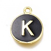 Латунь эмаль подвески, долговечный, чёрные, золотые, плоско-круглые, letter.k, 16.5x13x2 мм, отверстие : 1.5 мм(KK-H103-02K-G)
