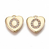 Латунные микропаве прозрачные кубические циркониевые подвески, без никеля , реальный 18k позолоченный, плоские сердца, letter.o, 10x10x1 мм, отверстие : 1 мм(KK-N231-234O-NF)