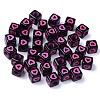 Непрозрачные черные акриловые европейские бусины,бусины с большим отверстием,Куб с сердцем,ярко-розовый