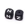 Силиконовые бусины,куб с письмом.чёрные,Размер : шириной около 12 мм