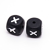 Силиконовые бусины, куб с letter.x, чёрные, 12x12x12 мм, отверстие : 2 мм(SIL-WH0002-25A-X)