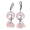 Обернутые проволокой чипсы натуральный розовый кварц большие подвесные украшения,с красной медью латунной проволокой и нейлоновым шнуром,плоские круглые с дерева жизни,