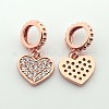 Brass Micro Pave Cubic Zirconia Large Hole European Dangle Heart Charms, Cadmium Free & Nickel Free & Lead Free, Real Rose Gold Plated, 17mm, Hole: 4mm, Heart: 10x9x1.5mm