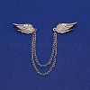 Двойное крыло с подвесной цепочкой из сплава брошь на воротник костюма,булавка на лацкан из прозрачного стекла для женщин,платина