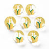 Transparent Glass Enamel Beads, Hand Drawn Beads, Round, Yellow, 13x12x11mm, Hole: 1.6mm