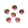 Серьги-гвоздики из непрозрачной смолы и орехового дерева,со штифтами из нержавеющей стали 316,плоско-круглые,розовые