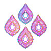 Ion Plating(IP) 304 Stainless Steel Filigree Big Pendants, Etched Metal Embellishments, Teardrop, Rainbow Color, 55x38.5x0.4mm, Hole: 1.6mm