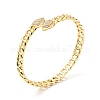 Прозрачный кубический цирконий каплевидный открытый браслет-манжета, браслет в форме латунных бордюрных цепей для женщин, без кадмия, без никеля и без свинца, реальный 18k позолоченный, внутренний диаметр: 2-3/8 дюйм (5.9 см)(BJEW-J165-01G)