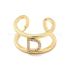 Кольцо-манжета с открытой буквой из прозрачного кубического циркония, настоящее 18-каратное позолоченное латунное кольцо с двумя линиями для женщин, без свинца и без кадмия, letter.d, размер США 6 (16.5 мм)(RJEW-A012-01G-D)