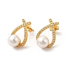 Серьги-гвоздики из латуни с микропаве из кубического циркония,серьги-капли с жемчугом и ракушками для женщин,долговечный,без кадмия и без свинца,реальный 18k позолоченный